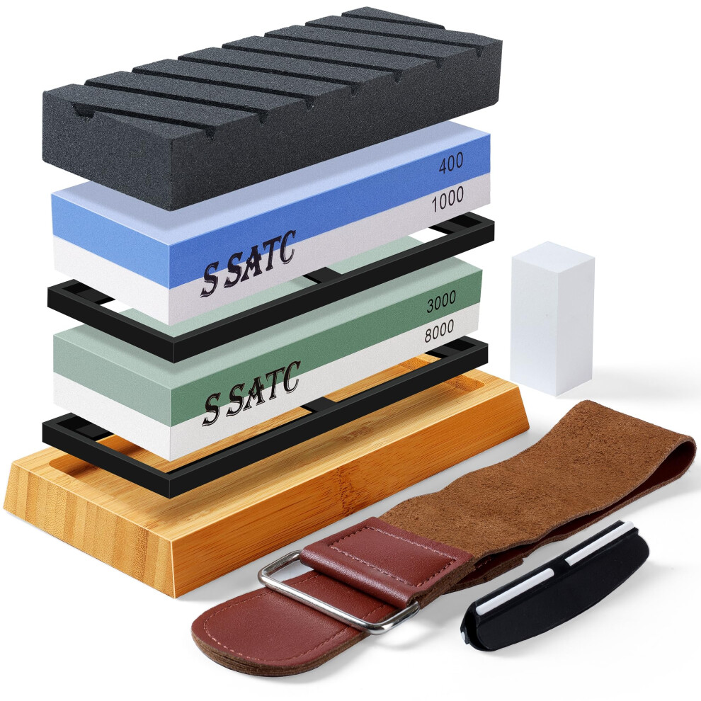 SATC Whetstone Professional Sharpening Stones 400/1000/3000/8000 Grit Kitchen Knife Sharpening Stone Kit Durable Wet Stones for Sharpening Kitchen