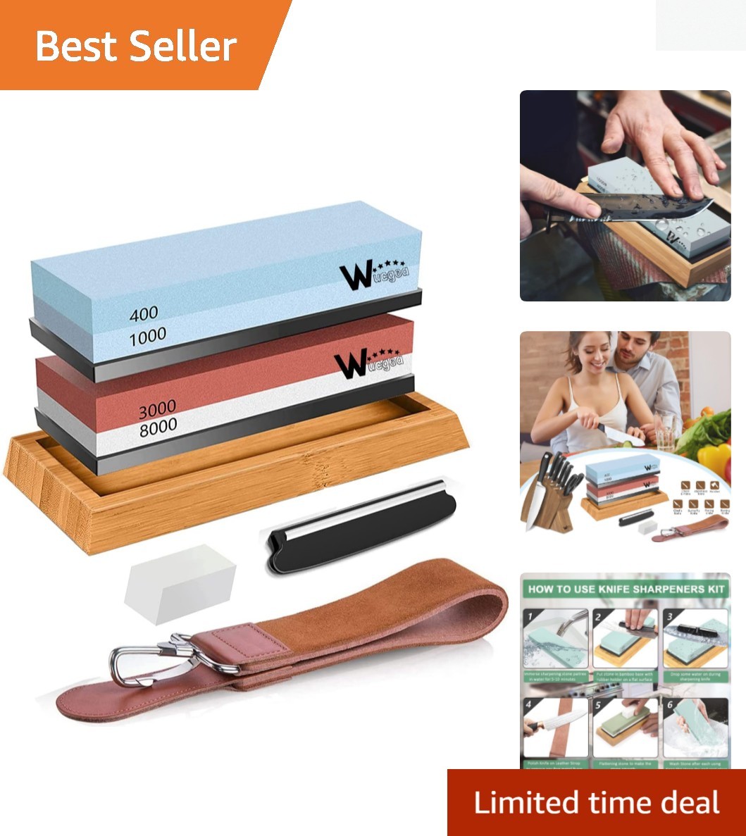 ^^ Professional Knife Sharpening Stone Kit Easy-To-Use Whetstone Set For Kitche