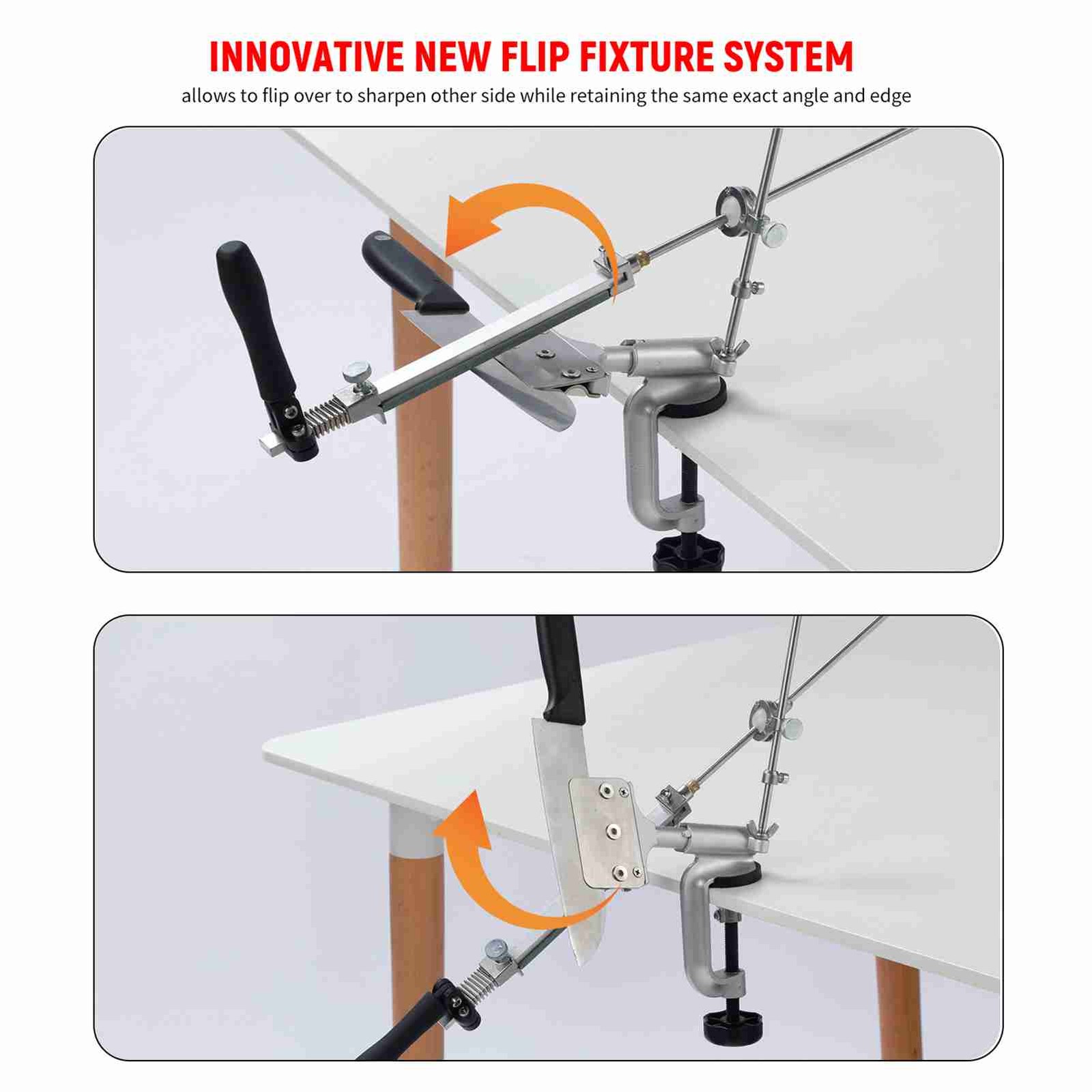 RUIXIN PRO RX-008 Professional Knife Sharpener with 7 Whetstones, 360° Rotation Flip Design Fixed-Angle Stainless Steel Kitchen Chef Knife Sharpening Kit Abrasive Holding System Tools