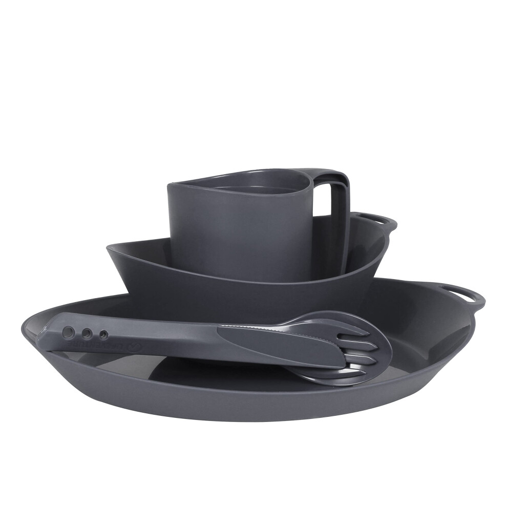 Lifeventure Ellipse Reusable 4-Piece Tableware Set: Knife/Fork/Spoon, Plate, Bowl, Mug For Camping, Travel & Outdoor - Graphite