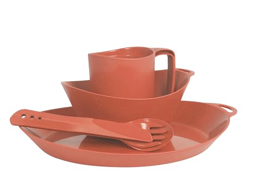 Lifeventure Ellipse Reusable 4-Piece Tableware Set: Knife/Fork/Spoon, Plate, Bowl, Mug For Camping, Travel & Outdoor - Rust Orange