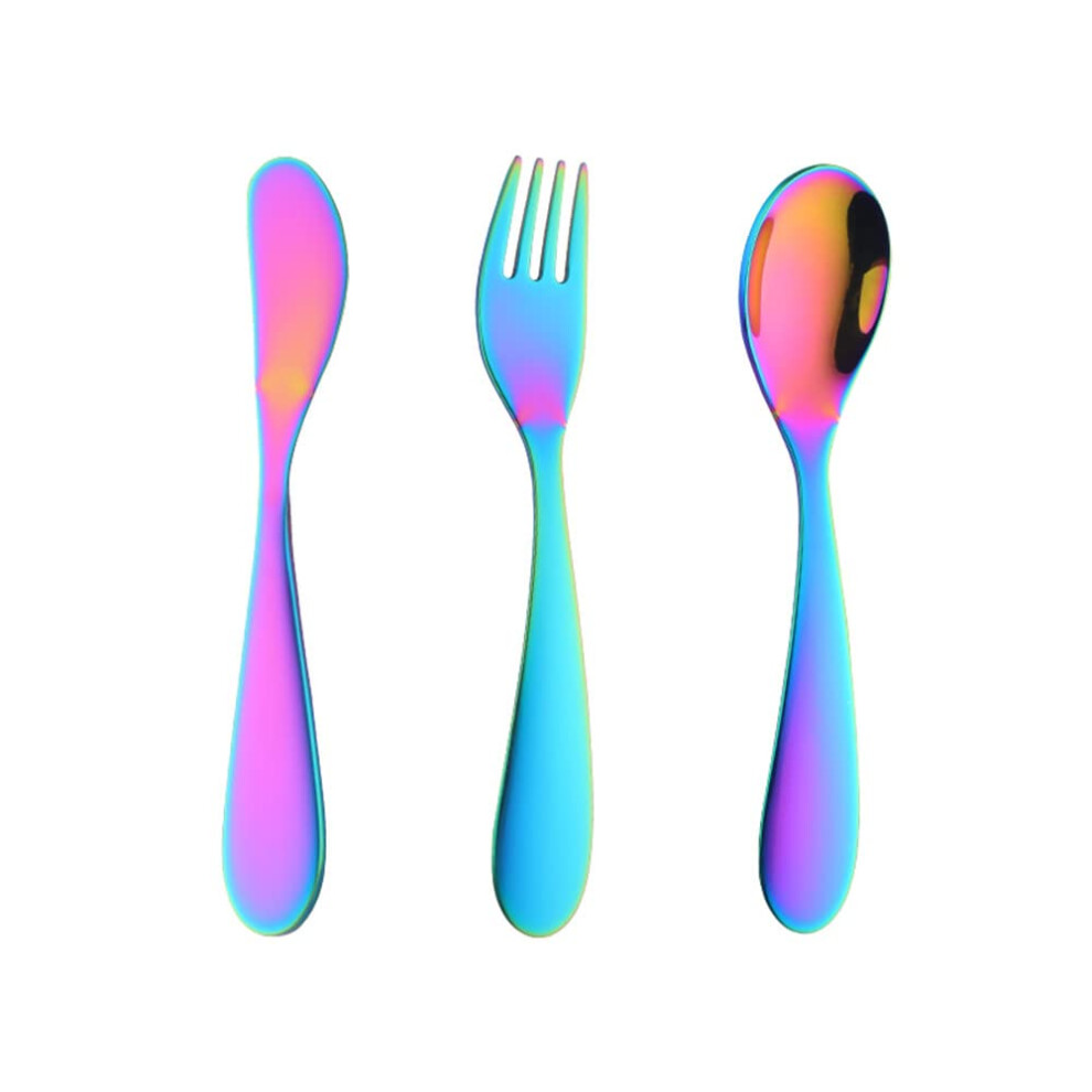 Rainbow Children Cutlery Metal, 3 Pcs Stainless Steel Kids Flatware Set with Knife/Fork/Spoon, Todler Silverware Healthy & Mirror Polished, Dishwasher