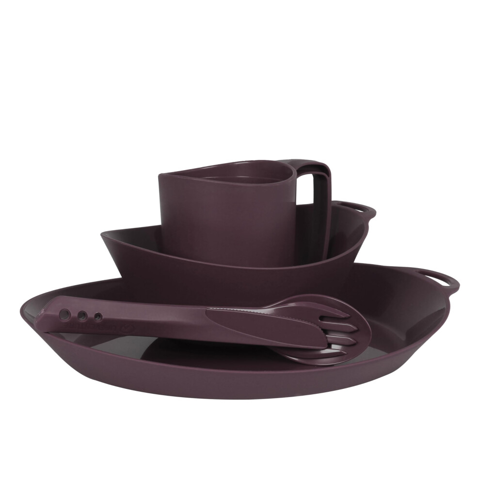 Lifeventure Ellipse Reusable 4Piece Tableware Set KnifeForkSpoon Plate Bowl Mug for Camping Travel Outdoor Purple