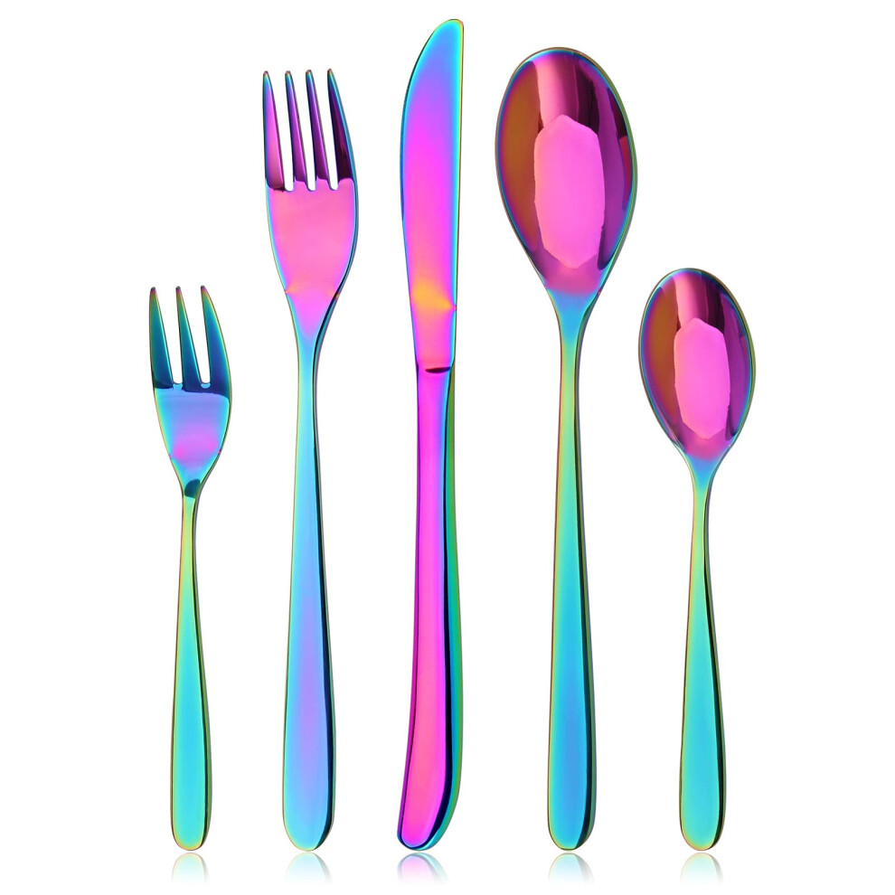 Bettlife Rainbow Cutlery Set, 30-Piece Cutlery Set for 6 People with Knife/Fork/Spoon, Stainless Steel Cutlery Mirror Polished Dinner Cutlery Set,