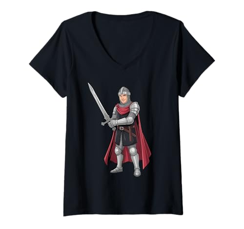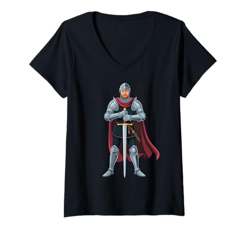Women's Men's Wearing Medieval Knight Costume Adult Medieval V-Neck T-Shirt