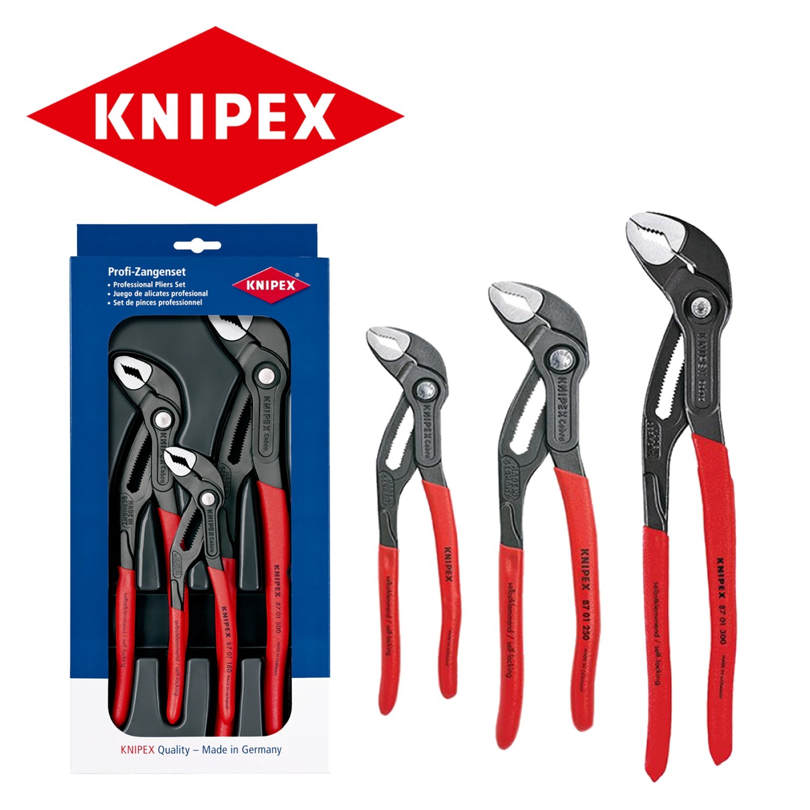 KNIPEX 002009 V02 3 Piece Set Cobra Waterpump Pliers/Grips 180mm 250mm 300mm