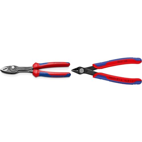 Knipex TwinGrip Slip Joint Pliers Black atramentized, with Multi-Component Grips 200 mm 82 02 200 & Electronic Super Knips® Burnished, with Multi-Component Grips 125 mm 78 61 125