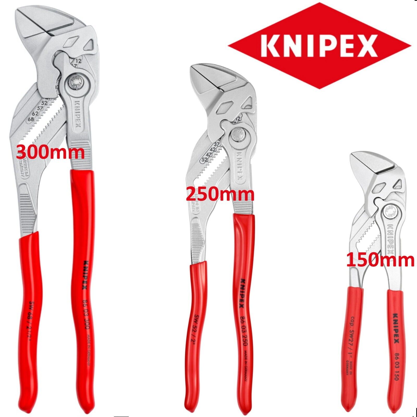 Knipex 3 Piece Pliers Wrench Set 150mm 250mm 300mm Water Pump Grips 00 19 55 S7