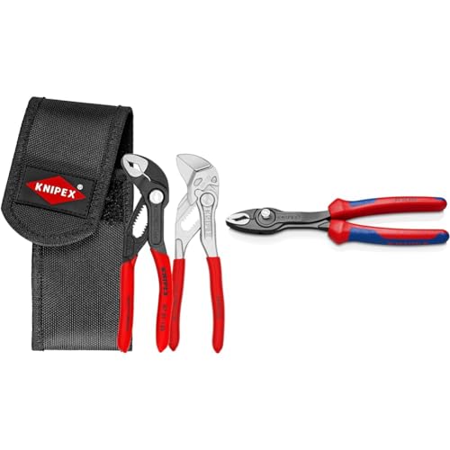 Knipex Mini Pliers Set in Belt Tool Pouch (self-Service Card/Blister) 00 20 72 V04 & TwinGrip Slip Joint Pliers Black atramentized, with Multi-Component Grips 200 mm 82 02 200