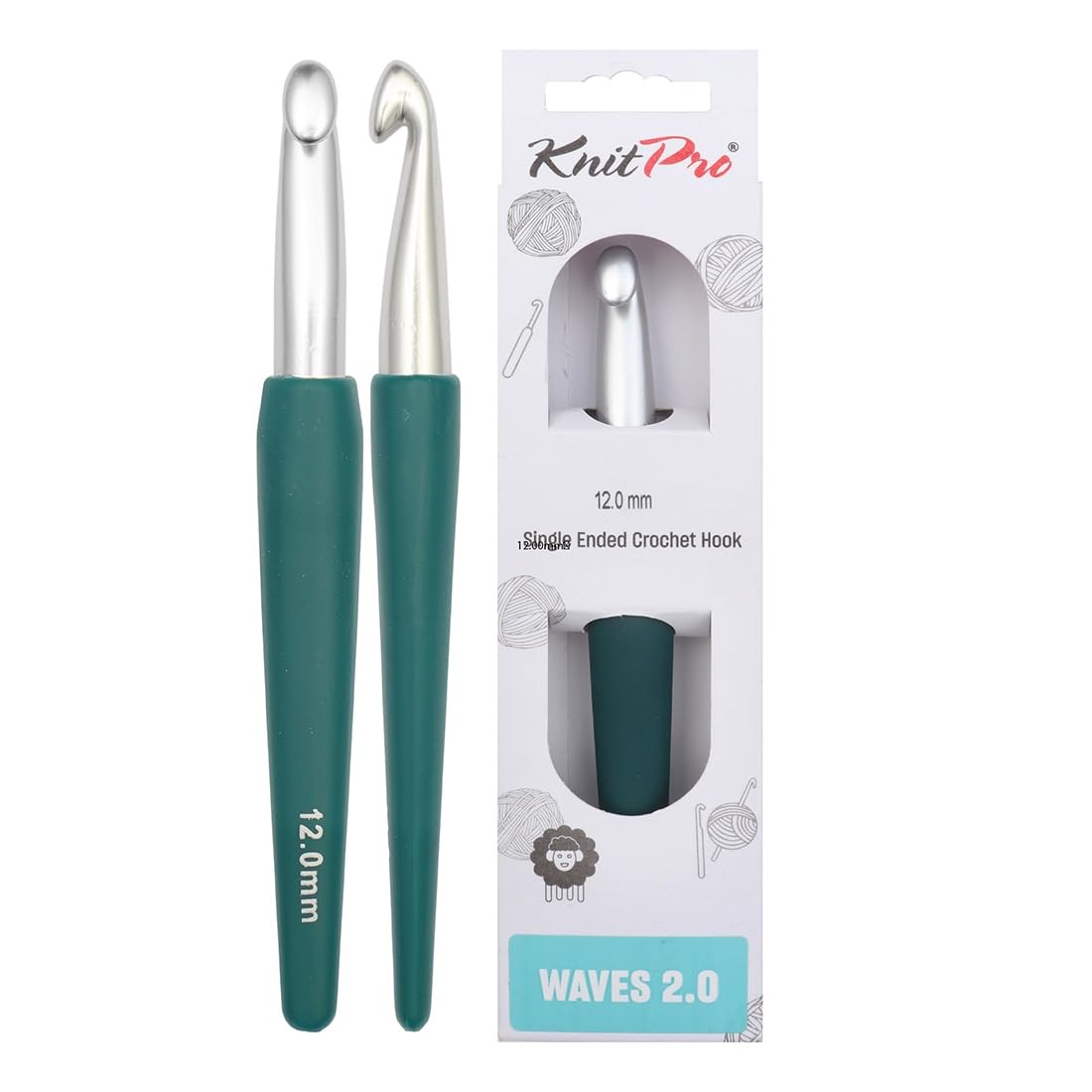 KnitPro Waves Crochet Hooks – 12mm Hook, Ergonomic Soft 12mm, Emerald