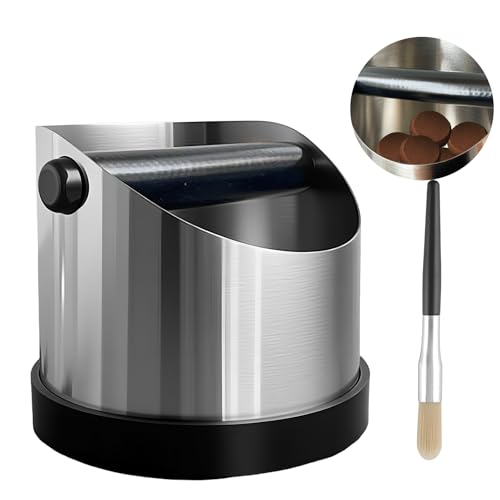 Coffee Grounds Knock Box - Stainless Steel Espresso Knock Box with Removable Knock Bar and Coffee Brush, Knock Container Espresso Dump Bin Grind Waste Bin Coffee Maker Accessories