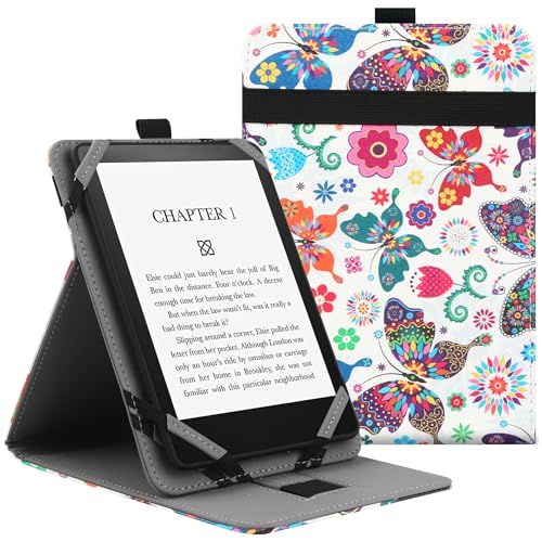 VOVIPO Universal Protective Case for 6" 6.8" 7" eReaders, Folio Stand Cover with Handstrap Compatible with Kobo/Tolino/Pocketook/Sony/paperwhite 6/6.8/7 inch ebook reader-Butterfly