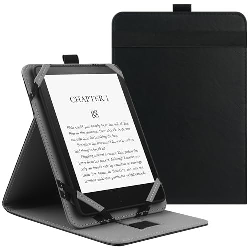 VOVIPO Universal Protective Case for 6" 6.8" 7" eReaders, Folio Stand Cover with Handstrap Compatible with Kobo/Tolino/Pocketook/Sony/paperwhite 6/6.8/7 inch ebook reader-Black