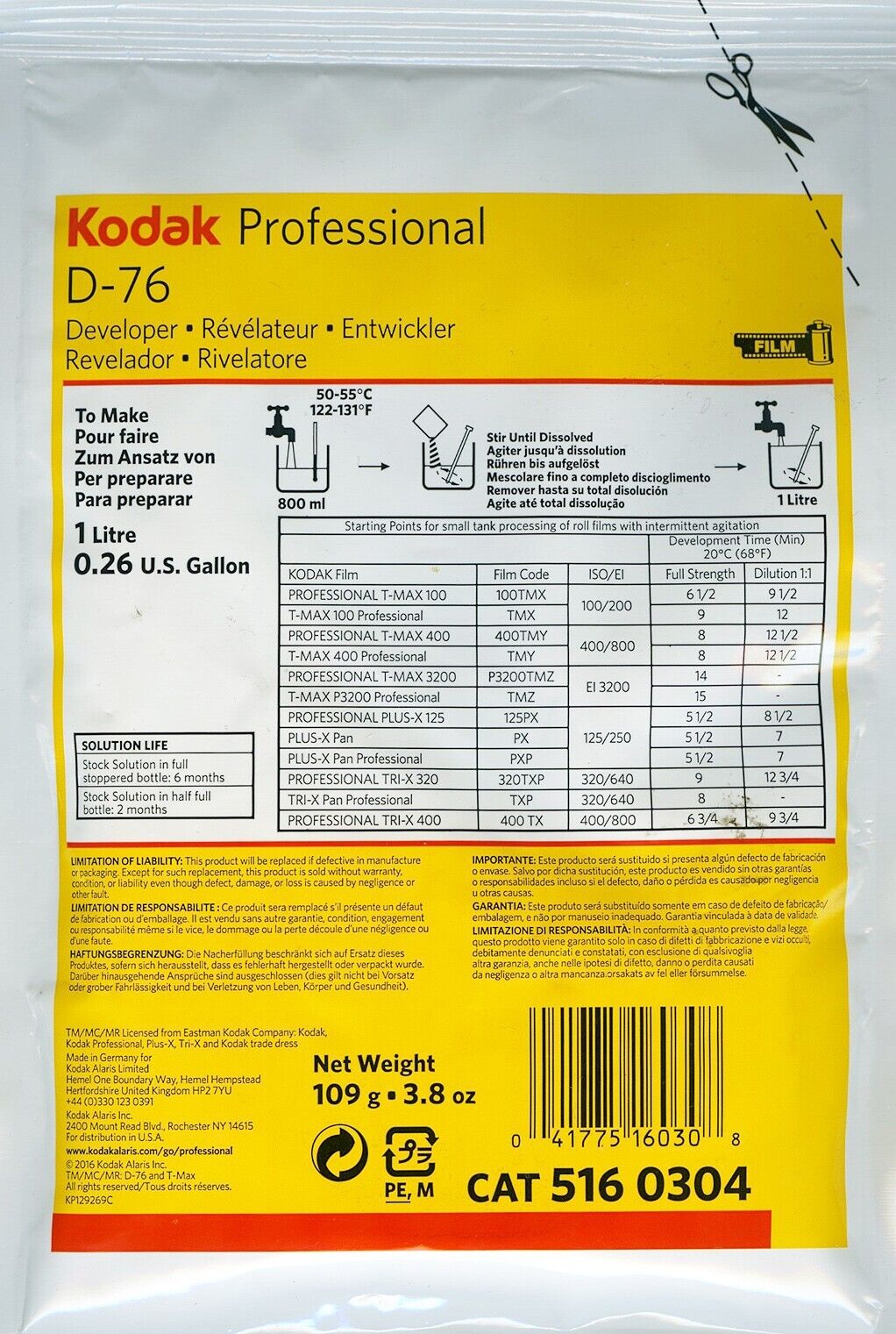 Kodak D-76 Black & White Developer Powder 1 Litre - Expiry 05/2028