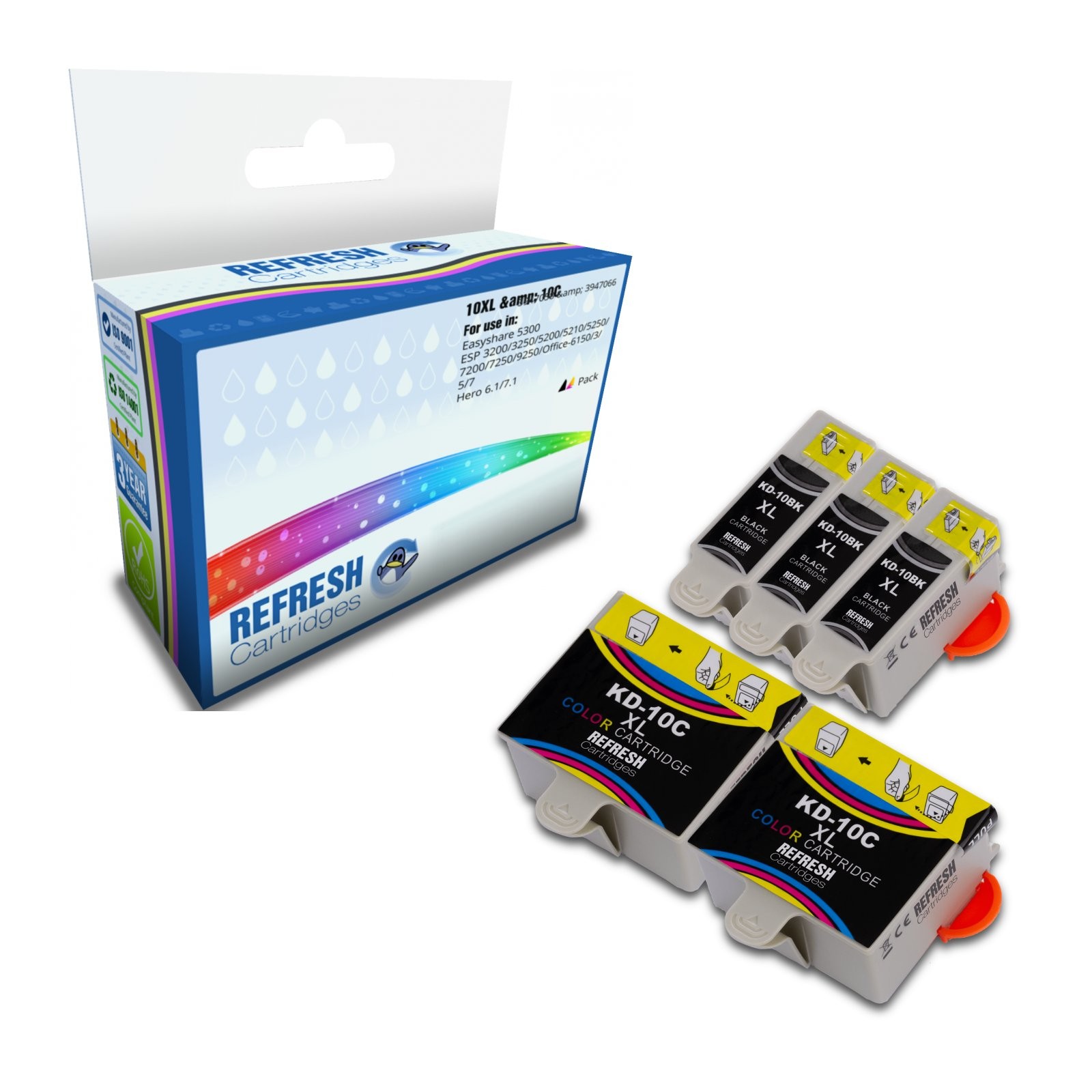 Refresh Cartridges Value Pack 3x 10XL/2x 10CL Ink Compatible With Kodak Printers