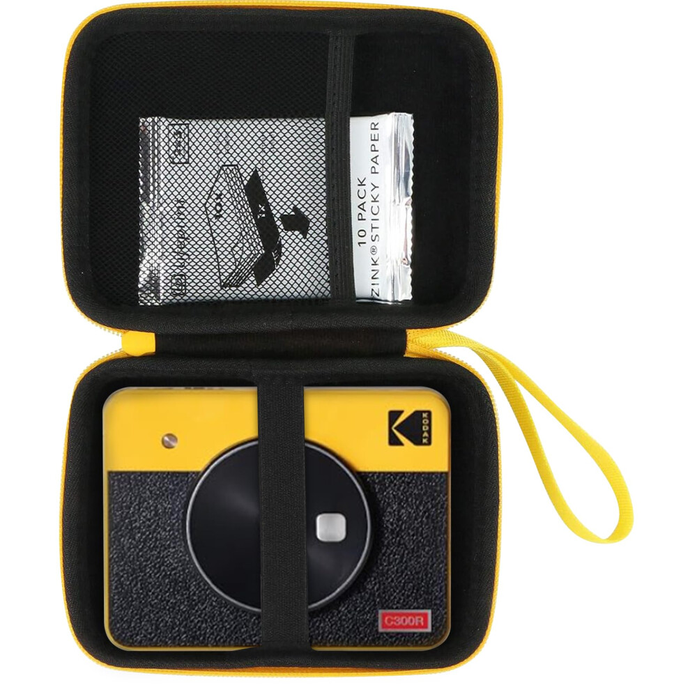Lebakort Hard Carry Case Compatible with Kodak Mini Shot 3 ERA/Mini 3 ERA/Mini Shot 3 Retro/Mini 3 Retro 4PASS 2-in-1 Instant Camera and Portable Photo Printer (Black+Yellow Case)