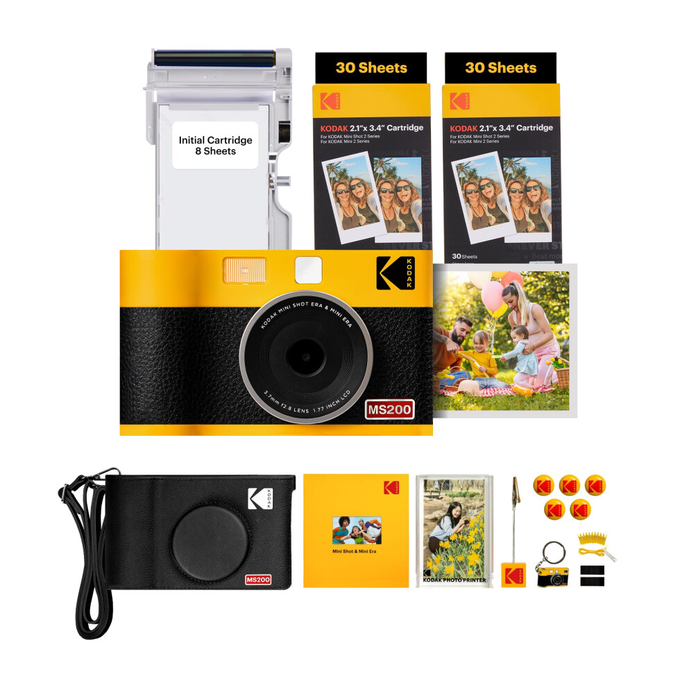 KODAK Mini Shot 2 ERA 4PASS 2-in-1 Instant Camera and Photo Printer (Yellow Camera + Initial 8 Sheets + 60 Sheets + Accessories)