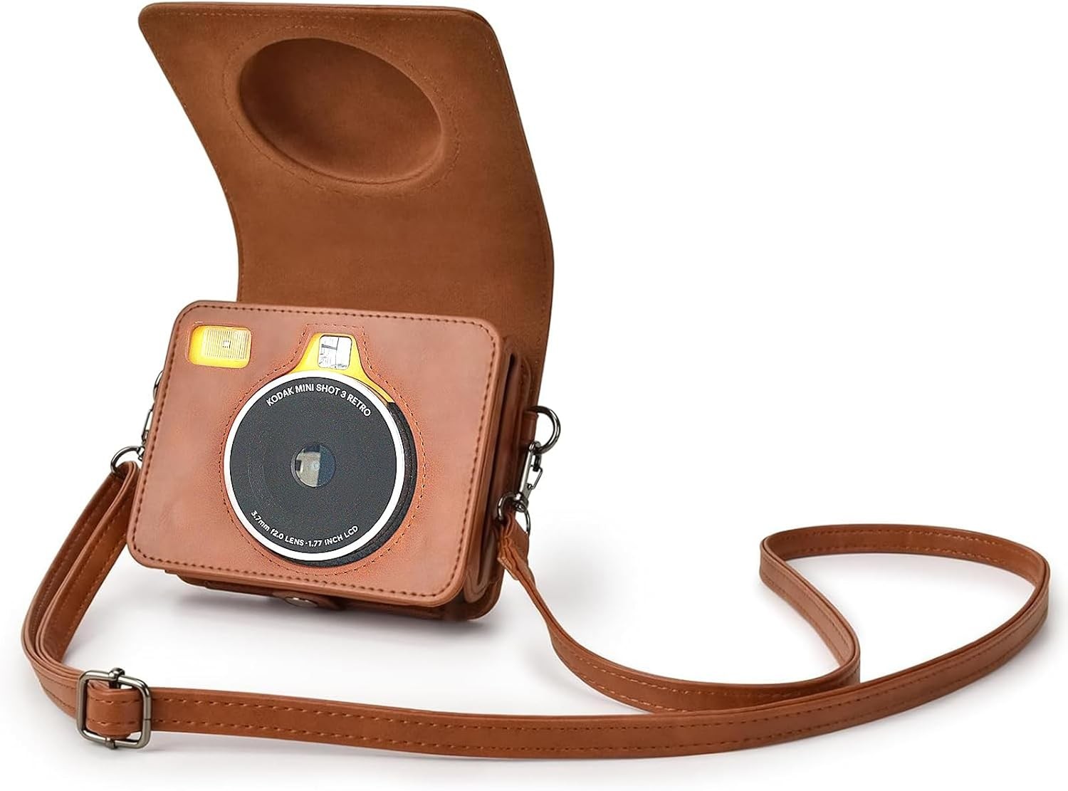 PU Camera Case Bag Removable Fashional Durable Retro Protective Case for Kodak Mini Shot 3 with Shoulder Strap Brown