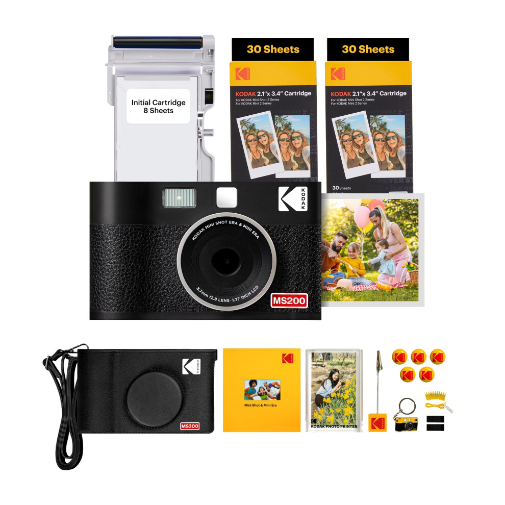 KODAK Mini Shot 2 ERA 4PASS 2-in-1 Instant Camera and Photo Printer (Black Camera + Initial 8 Sheets + 60 Sheets + Accessories)
