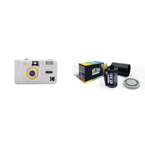 KODAK M35 DA00255 - Rechargeable Camera 35mm, Fixed Wide-Angle Lens, Optical Viewfinder, Built-in Flash, AAA Battery – Gray + GT PHOTO Color Retro Film 35mm - 24 Exposures
