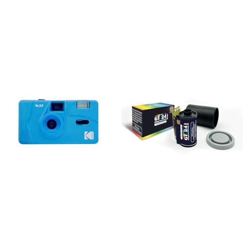KODAK M35 DA00240 - Rechargeable Camera 35mm, Fixed Wide-Angle Lens, Optical Viewfinder, Built-in Flash, AAA Battery – Blue + GT PHOTO Color Retro Film 35mm - 24 Exposures