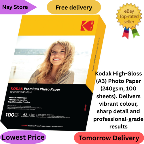 Kodak Photo Paper A4 (Glossy 240gsm - 50 Sheets) Premium Photographic Paper Uni