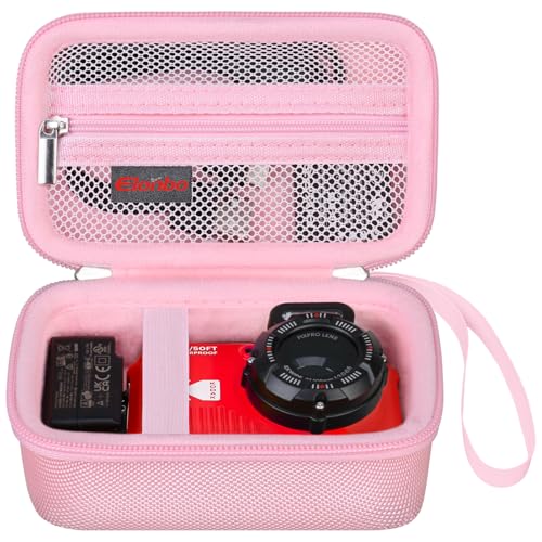 Elonbo Carrying Case for Kodak PIXPRO WPZ2 Rugged Waterproof Digital Camera, Shockproof WiFi 4K Video Digital Camera Storage Cover Bag, Mesh Pocket fits Battery Charger Memory Card. Pink