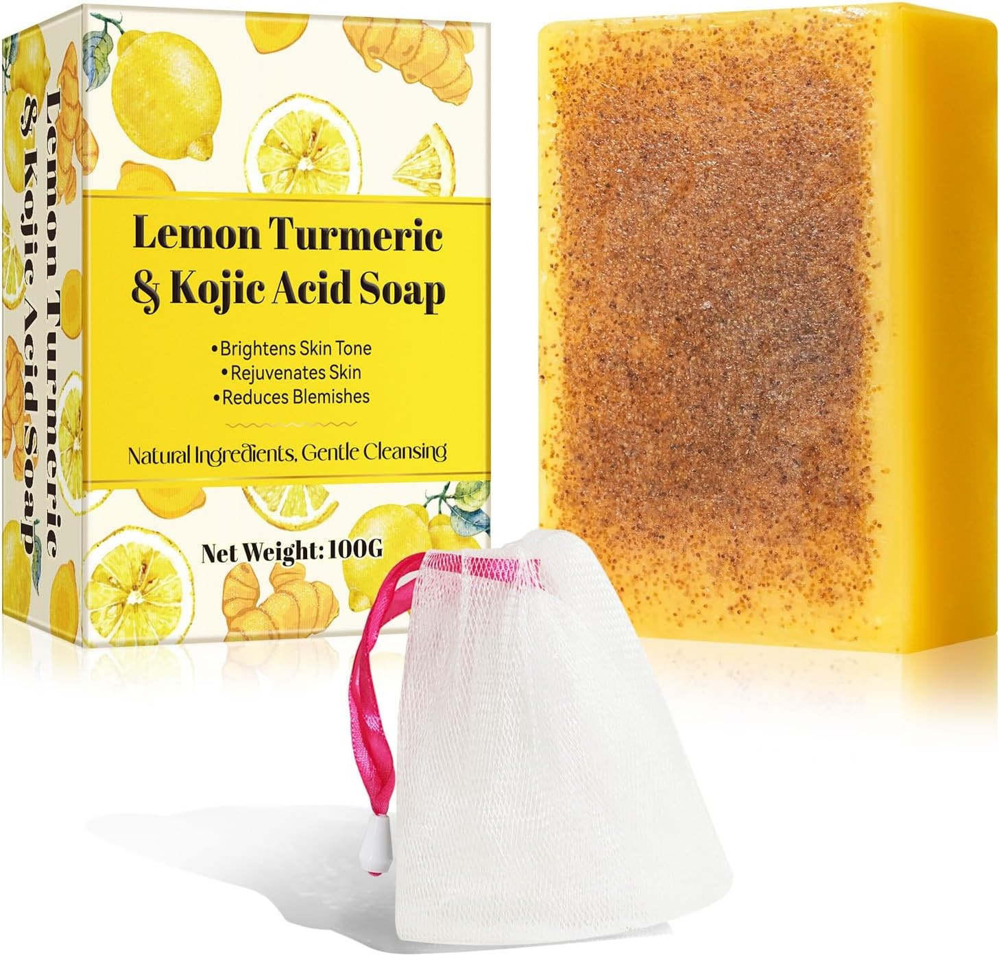 Kojic Acid and Turmeric Soap - Turmeric and Kojic Acid Soap with Bubble Net - T