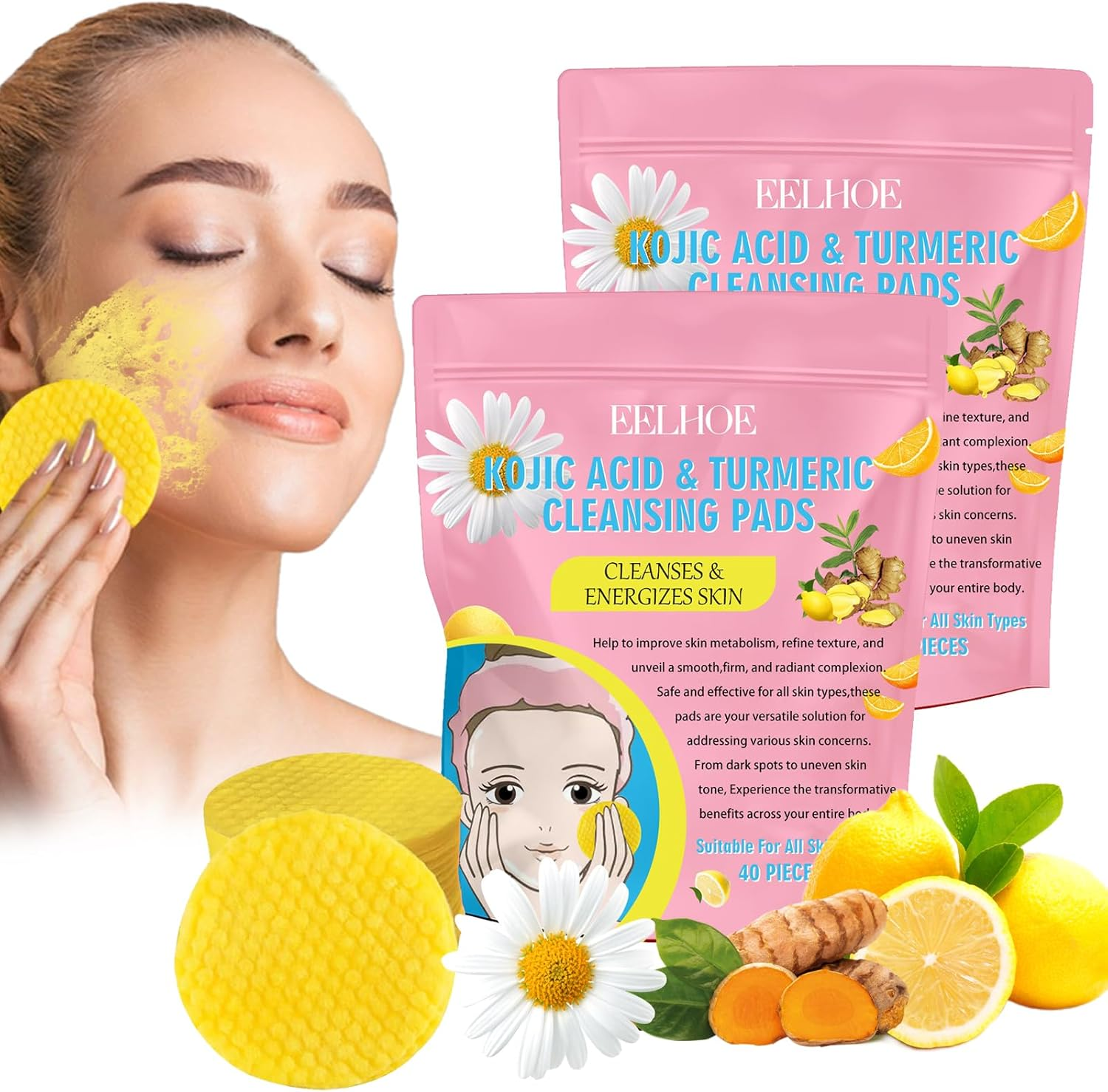 Kojic Acid and Turmeric Cleansing Pads - 40PCS Brightening and Exfoliating Pads