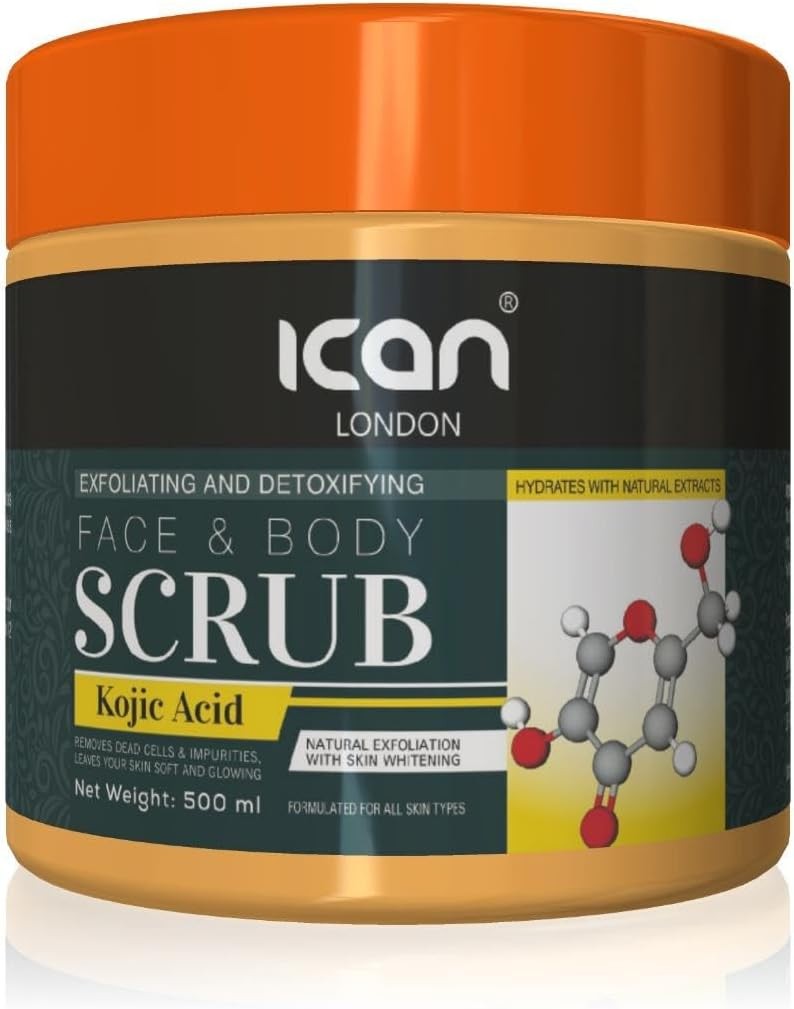 Ican London Kojic Acid Face and Body Scrub, Exfoliating and Detoxifying, 500ml
