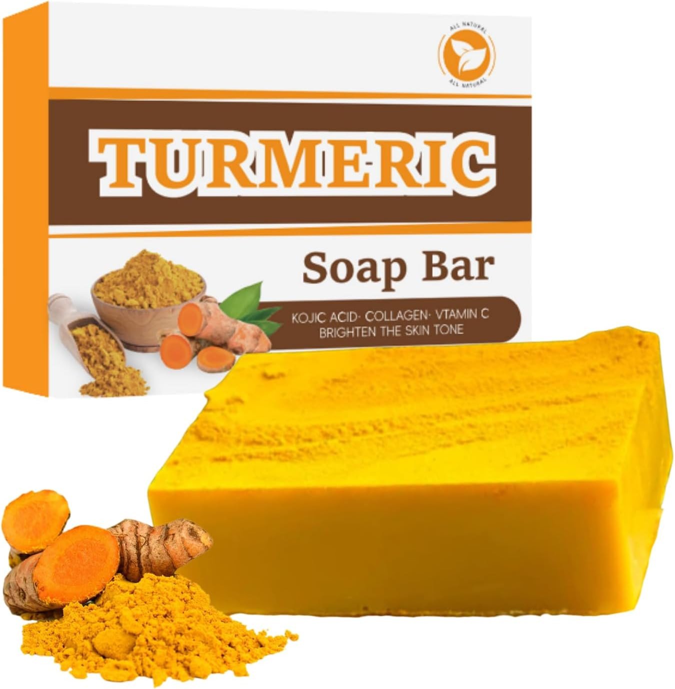 Turmeric Soap Bar for Body & Face - Natural Kojic Acid, Collagen, Vitamin C, Dar