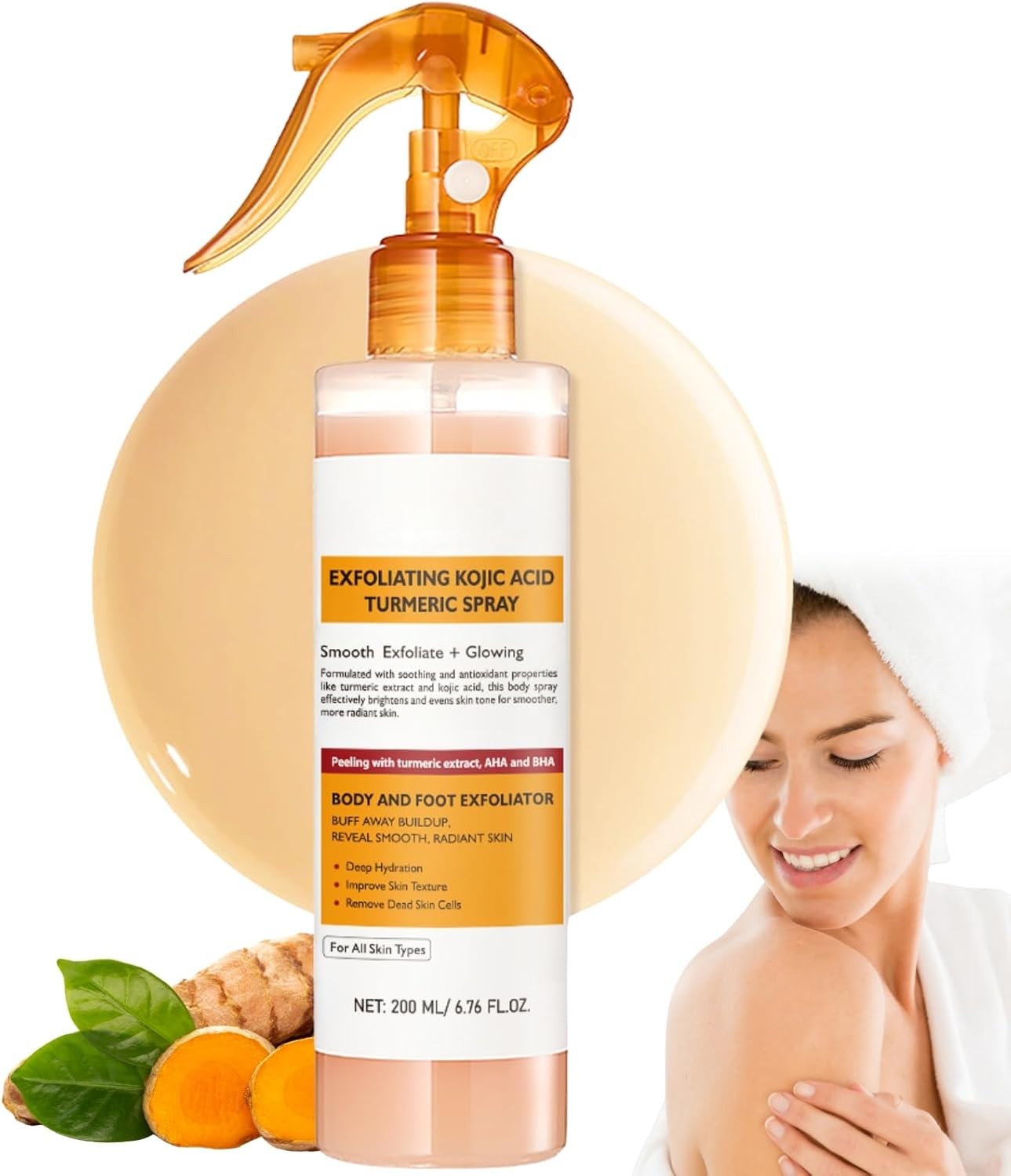 Kojic Acid Turmeric Spray, Exfoliating Body Spray,Peel Shot Keratin Care Turmer