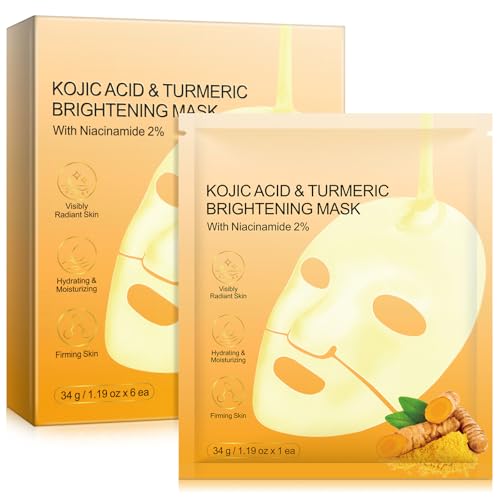 Kojic Acid & Turmeric Collagen Mask, Hydrating, Firming and Moisturizing, Pore Minimizing, Overnight Face Mask for Glass Glow Skin-Elasticity Improvement, Even Skin Tone, 6pcs