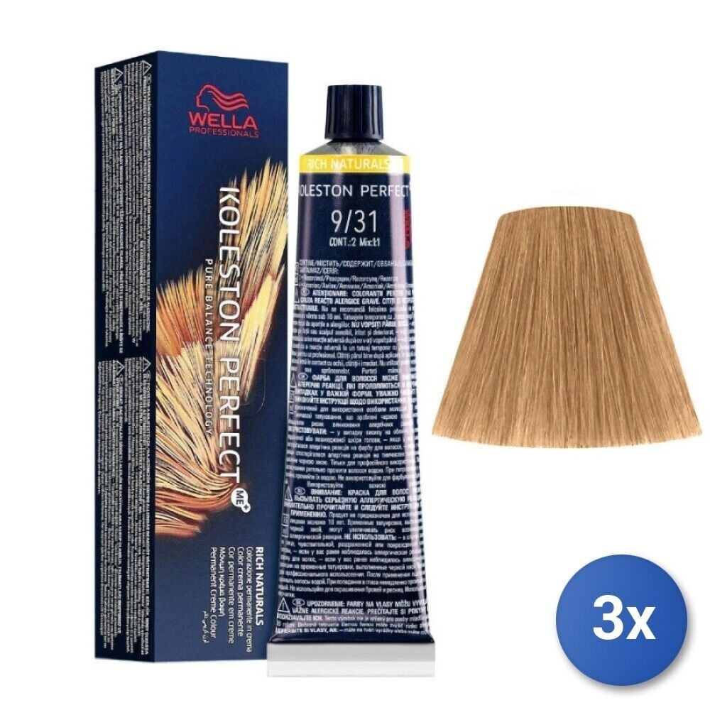 3x Wella Koleston Perfect Me+ Rich Natural 9/31 60ml