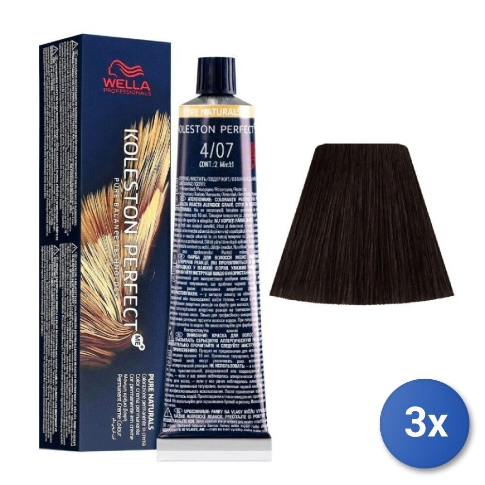 3x Wella Koleston Perfect Me+ Pure Naturals 4/07 60ml