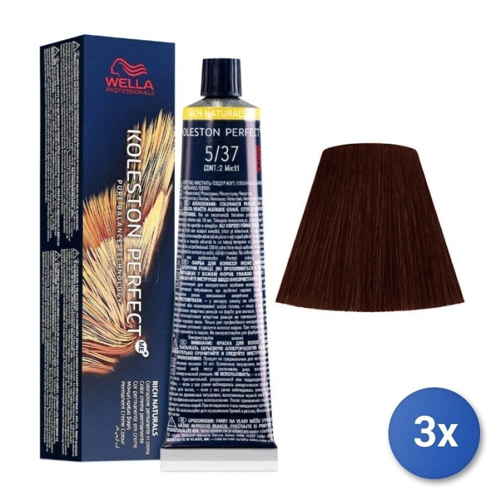 3x Wella Koleston Perfect Me+ Rich Natural 5/37 60ml