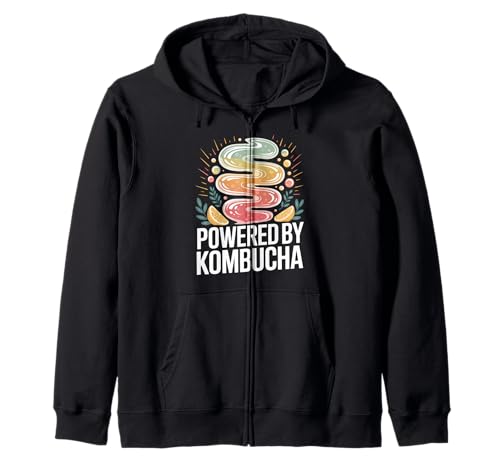 Powered By Kombucha Funny Beverage Art Zip Hoodie