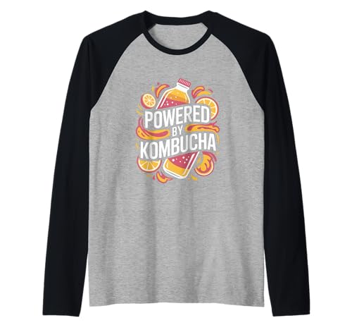 Powered by Kombucha Enthusiast Graphic Raglan Baseball Tee