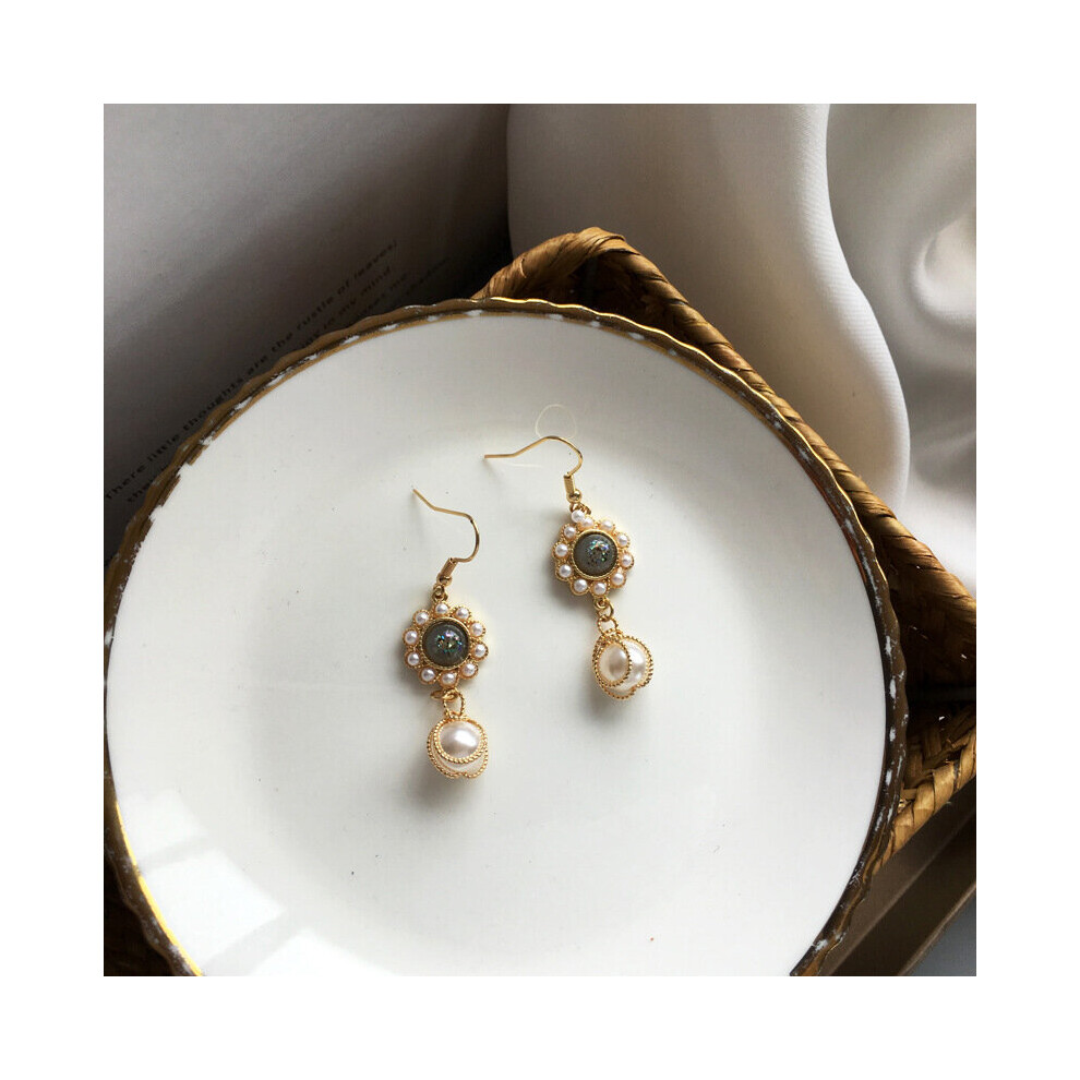 Temperament Graceful Ladies Accessories Hong Kong Style Pearl Round Ball Pendant Clip Earrings Jewelry