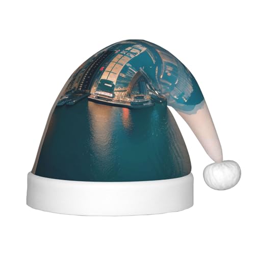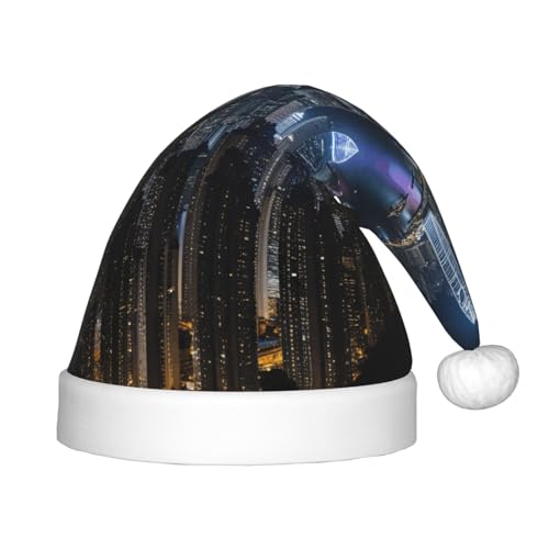LLOTPQ Christmas Hat for Kids - Festive Santa Hat with Aerial Night of View Hong Kong Print Design, Perfect for Holiday Parties and Winter Wear