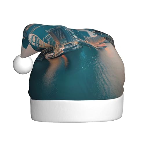 SDEGTHO Aerial Night Of View Hong Kong Santa Hat For Adult Led Christmas Hats Unisex Holiday Comfort Xmas Hat For New Year Festive Party