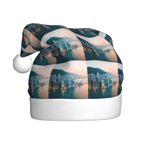 WHJSSF Overlooking Hong Kong Picture Christmas Hat for Adult Soft, lightweight Holiday party use