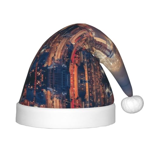 GUOLGP Aerial Night of View Hong Kong Print Kids Adults Christmas Hat for Holiday Xmas New Year Celebrations Party Headwear