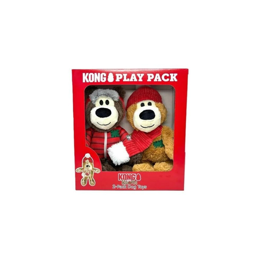 KONG Dog Toys 2 Pack Wild Knots Bear Soft Durable Plush with Squeaker and Internal Knotted Rope Minimal Stuffing Play Pack Gift Box for Dogs
