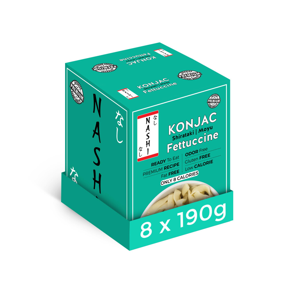 Nashi Shirataki Konjac Fettuccine Pasta 8×190g | Low Calorie & Fat Free | Odour Free Konjac Noodles, Keto & Vegan Friendly Instant Meal | Glucomannan,Gluten-Free High Fibre Pasta, Ready to Eat