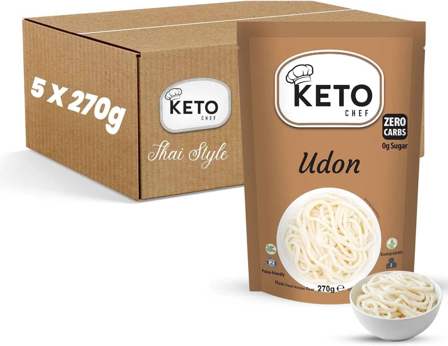 Keto Chef Thick Instant Udon Noodles (Pack of 5, 270g)- Konjac Vegan Noodle, Ze