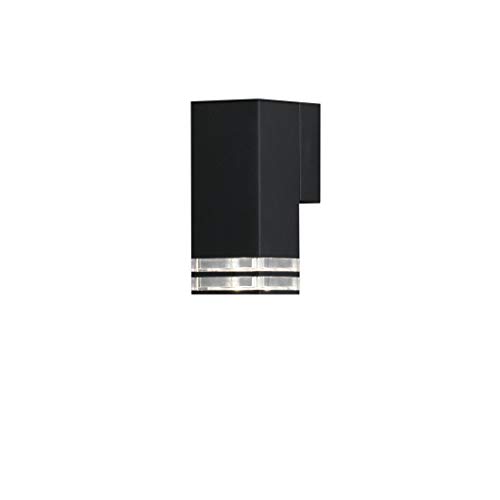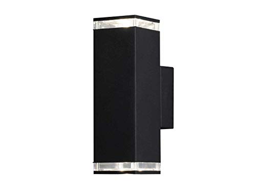 Konstsmide Handmade Outdoor Wall Light Mains Powered/Pollux Single Up Down Modern Lantern/2x7 Watt Max GU10 Lamp/Clear Acrylic Glass Lens/Aluminium/IP44/Black Outside Light