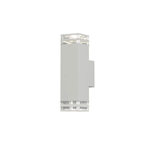 Konstsmide Handmade Outdoor Wall Light Mains Powered/Pollux Single Up Down Modern Lantern/2x7 Watt Max GU10 Lamp/Clear Acrylic Glass Lens/Aluminium/IP44/White Outside Light