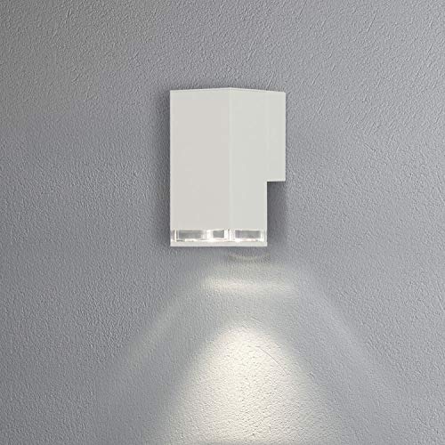 Konstsmide Handmade Outdoor Wall Light Mains Powered/Pollux Single Down Modern Lantern/1x7 Watt Max GU10 Lamp/Clear Acrylic Glass Lens/Aluminium/IP44/White Outside Light