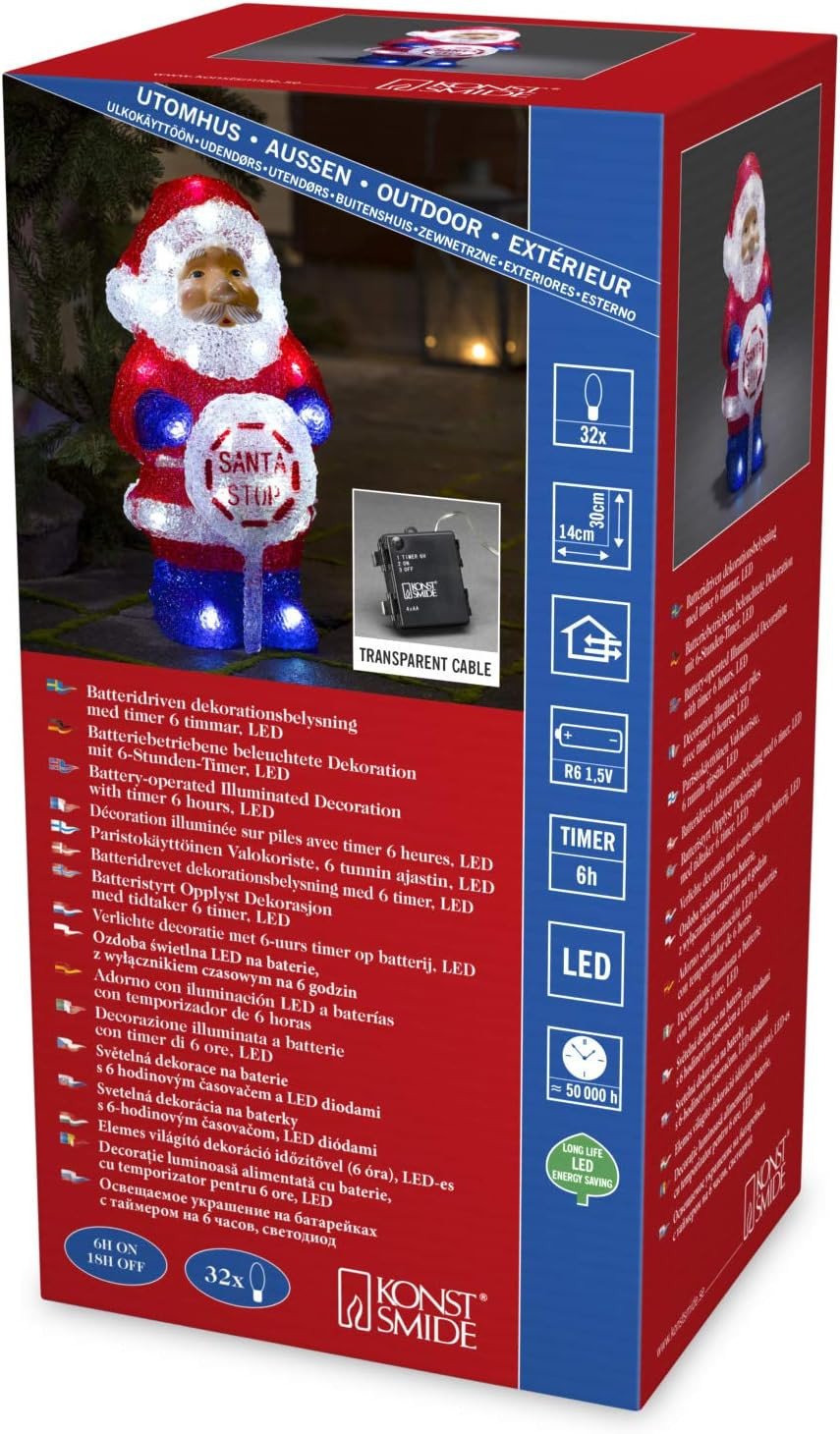 Konstsmide 32cm Acrylic Santa : Battery Operated with Timer : 24 LED : Indoor/O